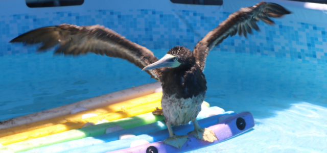 Um atobá (Sula leucogaster) e uma tartaruga-verde (Chelonia mydas) estão entre os seis animais estabilizados